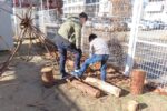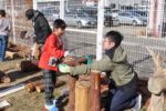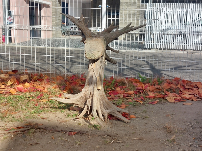 先週に続いて2回目の「木で遊ぼう」というワークショップだった。前回参加した男子がまた遊びたいと館庭に出てきた。始めにトラちゃん作の神様に子どもたちは一礼し、活動に入った。遊んでけがをしないようにということだった。