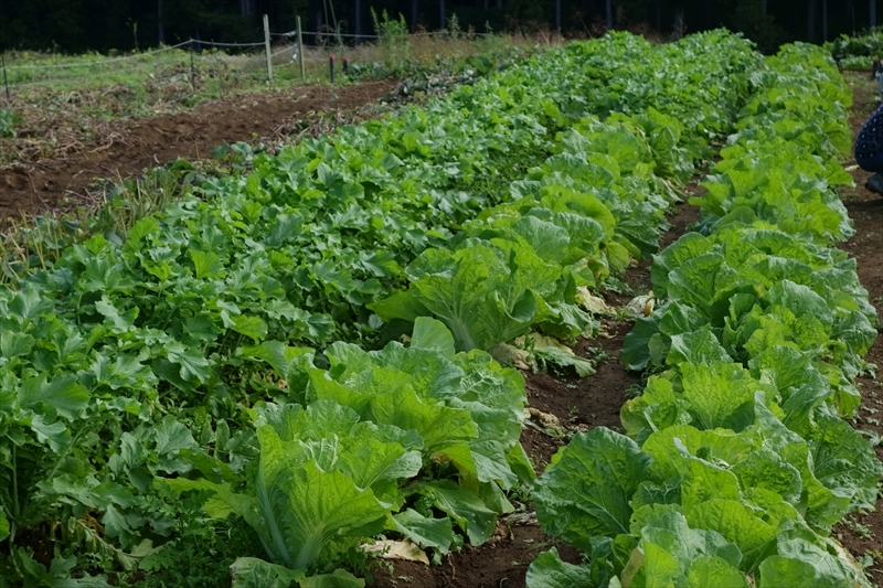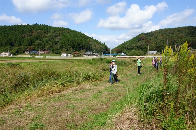お城跡では草原を歩くたびにバッタがぴょんと跳ね、みんな身を縮めて足元を見つめて虫探しをしていた。お城跡から戻りの道では畑に生えた野菜を見つけると葉っぱを見て「あれはにんじん。あれはねぎ。」とひとつひとつ観察してみている子がいた。何度も坪沼に足を運び、野菜を植えたり畑のそばを通り、はじめの頃よりも野菜の知識や興味が増えているのだろう。畑で作業をしていた人を見つけると子どもたちは自分から「こんにちは。」と挨拶をした。