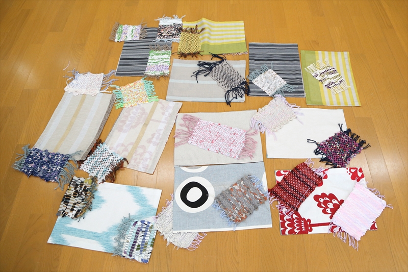 住民の皆さんは、あらかじめ裂き織り機つくりと裂き織りを体験。各自が織った裂き織りを持参してランチョンマット作りを楽しみました。