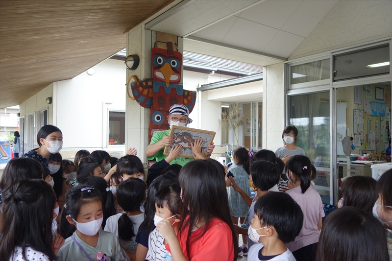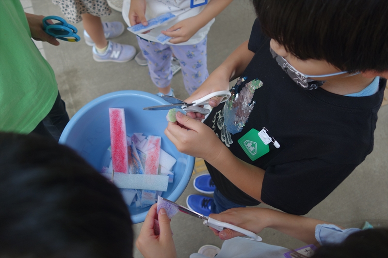 いろいろな模様があるので、どれにするか迷いながらも上手にスタンプを押すことができた。中には力強くパンチするようにスタンプして楽しむ男子もいた。