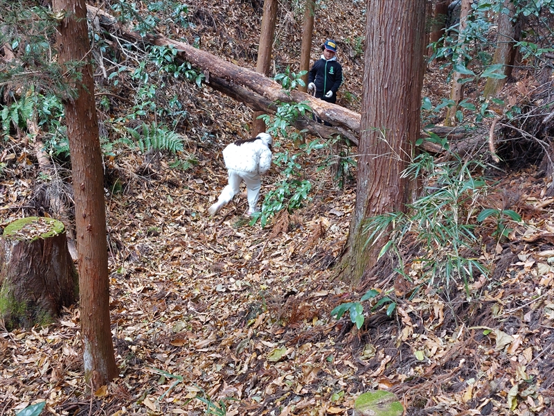 小さな沼(坪沼の由来になっている)では錦鯉を探し、長い石段を意欲満々で登り、根添城の館跡では空堀をするすると下りたりと元気一杯だった。
