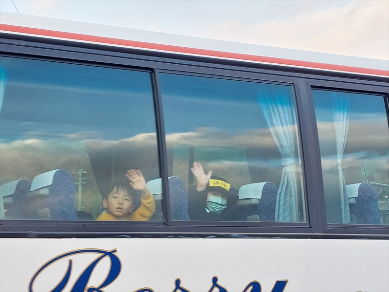 帰りのバスの中から多くの子どもが手を振ってくれた。