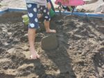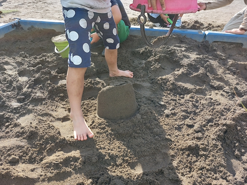バケツに砂を入れてひっくり返し山の土台を作ったがそこから山作りには発展しなかった。