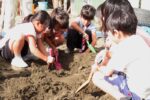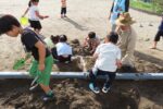 砂場に半円、そこからはみ出して残りの半円を描いた。「ここを掘るぞ」その声で子どもたちは砂を掘り出した。