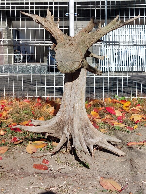 トラちゃんは、園庭の片隅に無造作に置いてある樹の根っこを重ねて「これは、みんなの遊びを見守るよ!」と言ってから活動を始めた。