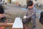 本来であれば坪沼八幡神社でも最後のワークショップの日だったが、熊出没に対する安全対策として野外での活動は行わず、訪問ワークショップに変更となった。児童館職員がこれまでのフィールドワークで集めた木材を児童館に運んでおいてくれたので、子どもたちは材料が不足することもなく、たっぷり遊ぶことができた。