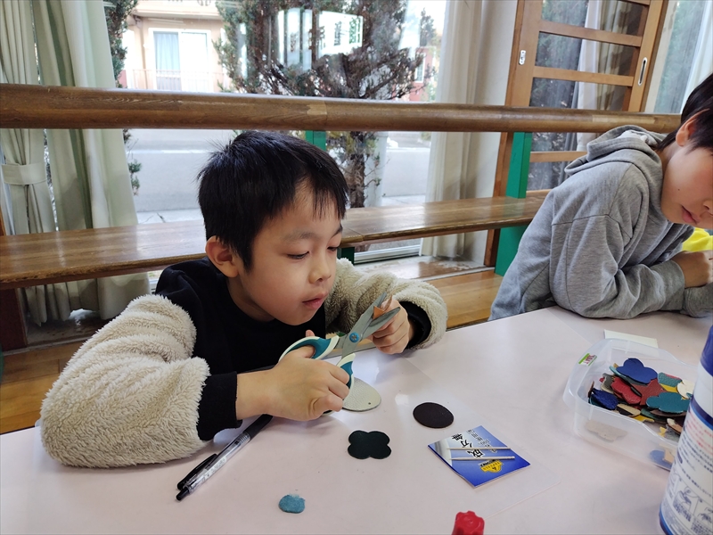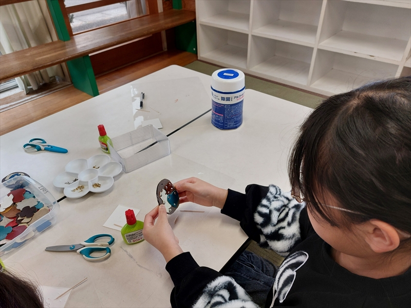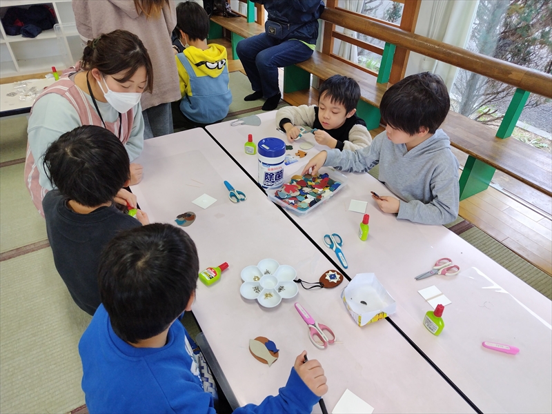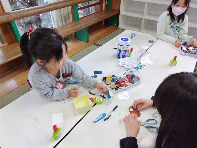 子どもたちは用意された星や花、魚や鳥などから好きな形を選んでデザインした。