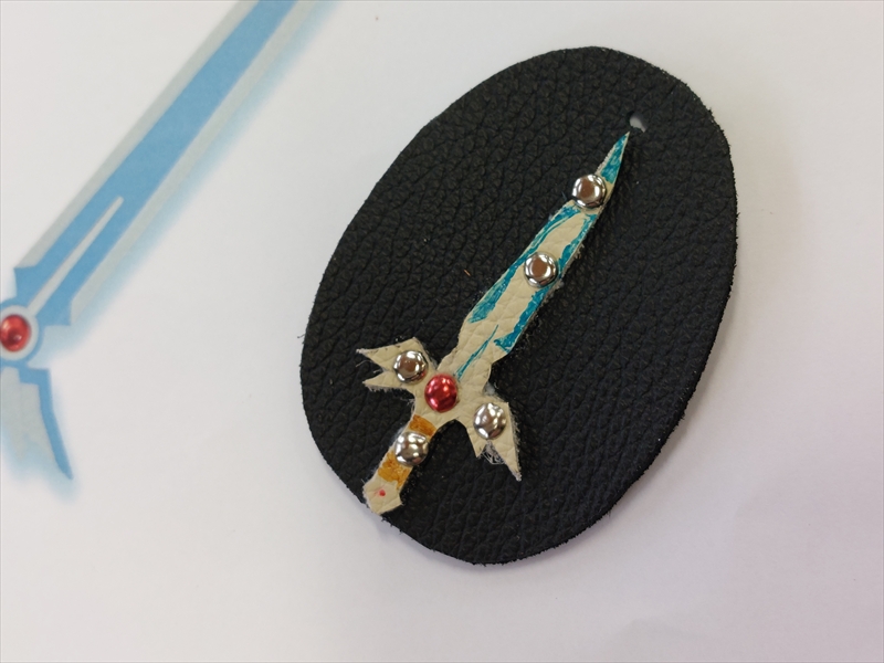 「光ってカッコいいね」と声を掛けると嬉しそうに「お守りにする」という子がいた。割ピン作業が終われば裏に皮を張り、大きな穴に革紐を通して完成だった。