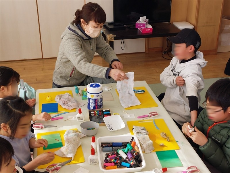 創作活動が単にそのときだけの創作に終わるのではなく、子どもの心に残り続け、子どもの自信につながるだということを知ることができた。どの作品もアイディアに満ちた、子どもらしい個性豊かなものとなった。