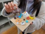 赤、青、黄色、白、黒の紙粘土でヘンテコ動物を作るという、午前中と同じコンセプトでワークショップを行った。