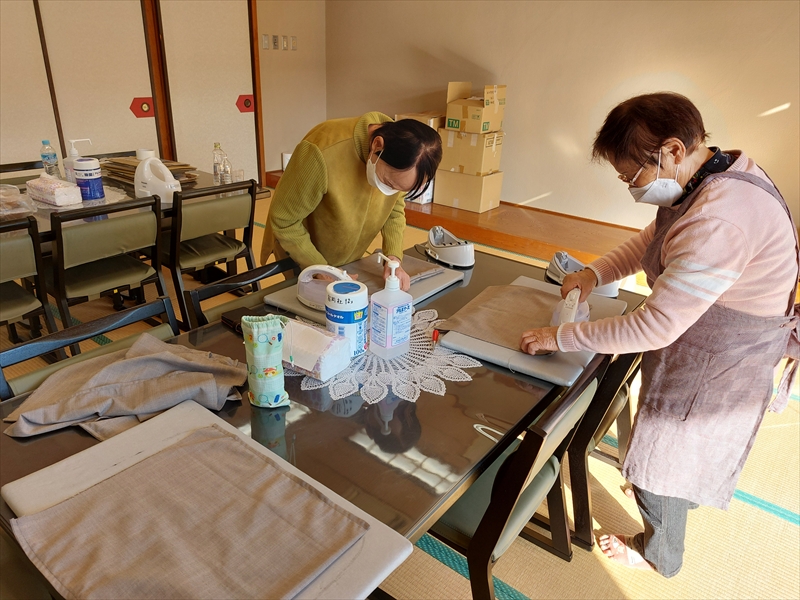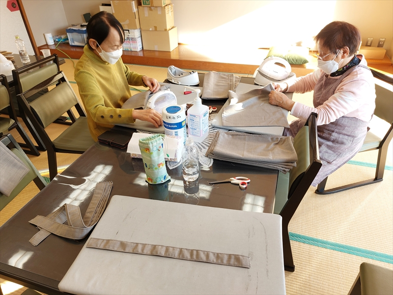 作業はミシンがけとアイロンかけの2チームに分けて作業をしました。