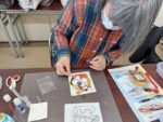 千田先生から押絵についてのお話の後、制作を開始しました。ちりめん布を綿のついた土台に貼る工程は細かな作業が多いのですか、ものつくりがお好きな方が多くスムーズに制作が進みました。