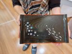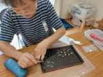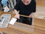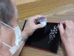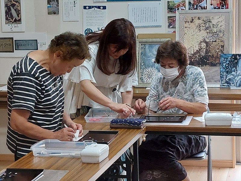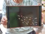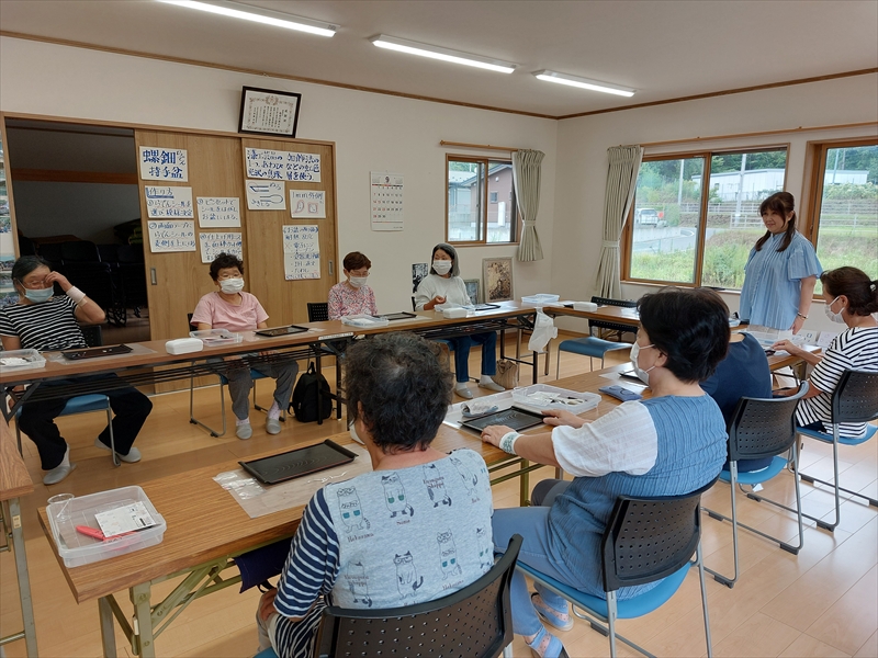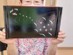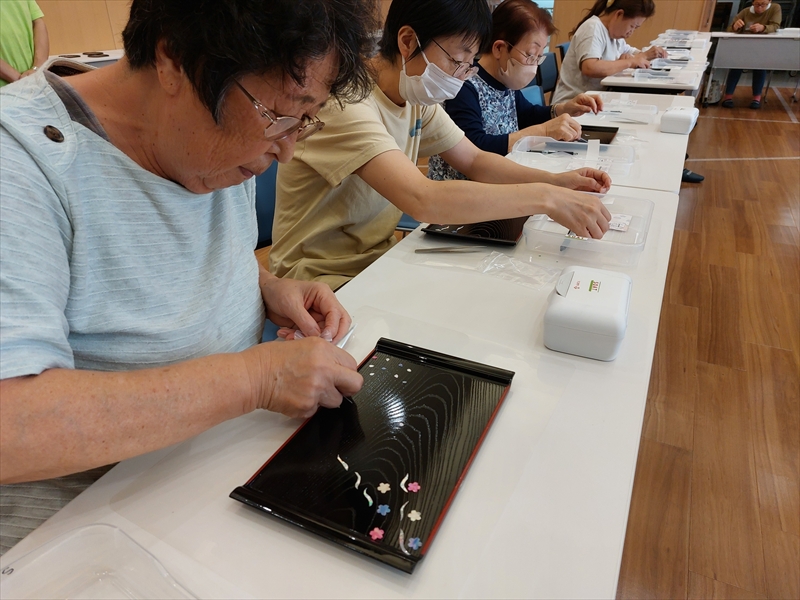 細かなシールの扱いに苦戦しながらも、らでんが輝く作品の仕上がりにはみなさん満足そうで、「今日は父ちゃんにこれで晩酌出してあげよう!」「お正月にも使おう!」など、お話をされていました。