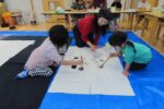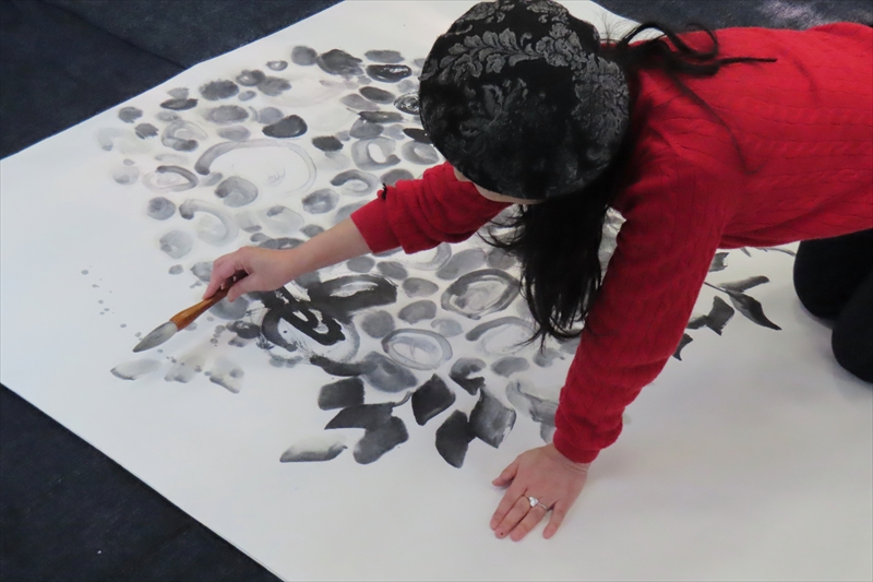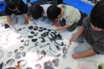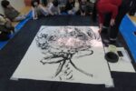 8月に開催した第一回目の世代間交流活動では一人一人が作品つくりを体験しました。今回は「みんなで大きな墨画を書こう!」として、墨画家の一関恵美先生を講師に共同制作を行いました。