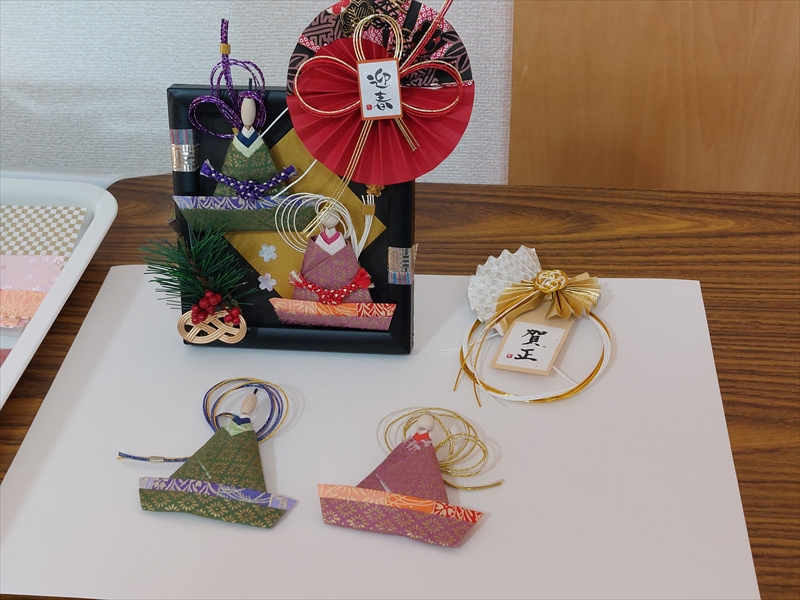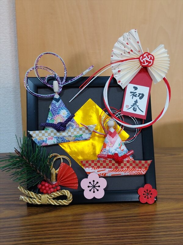 今回は「初春」を長く楽しめるようにお雛様を添えた飾りつくりです。細かなパーツに苦戦しながらも、それぞれが描いたイメージに近づくよう熱心に制作しました。