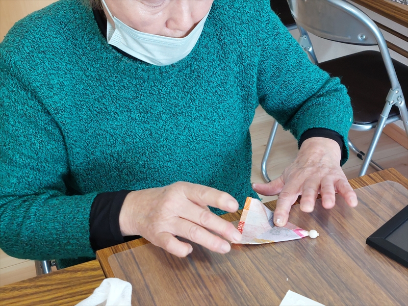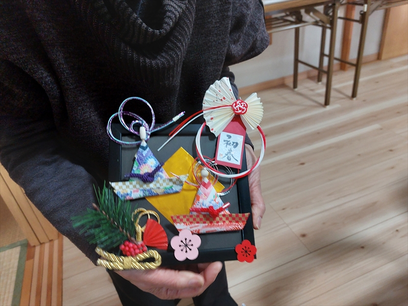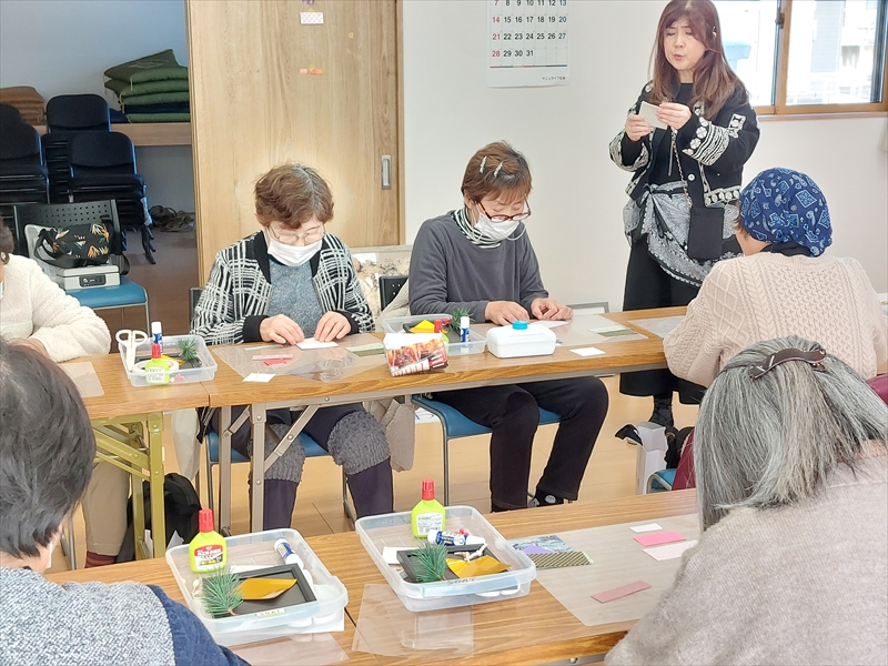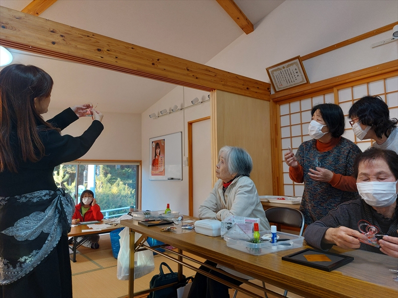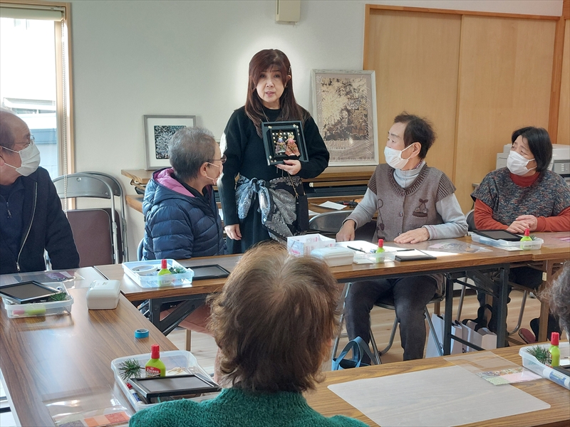 「去年數本先生に習った正月飾りは一年中飾っているよ!」、「夏に作ったトレーはお正月用にとってあるんだよ!」と、すっかり顔なじみとなった數本先生との会話を楽しみながらワークが始まりました。
