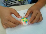 粘土のように好きな色を混ぜて作る事ができるので、「全部の色を混ぜたらどうなるかな?!」と色作りに夢中になるお子さんもいました。