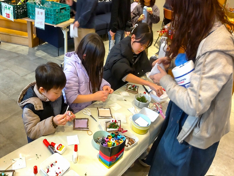 自然素材を使って、クリスマスツリー模様のオーナメント作りを開催しました。