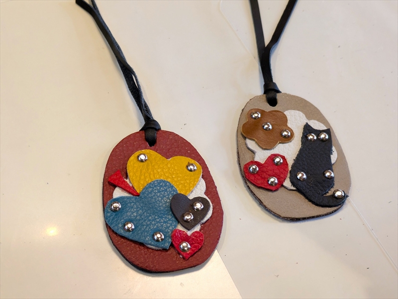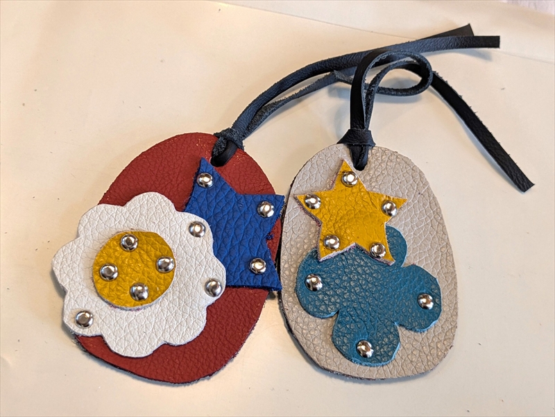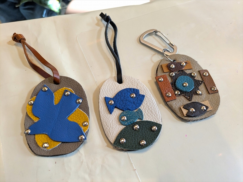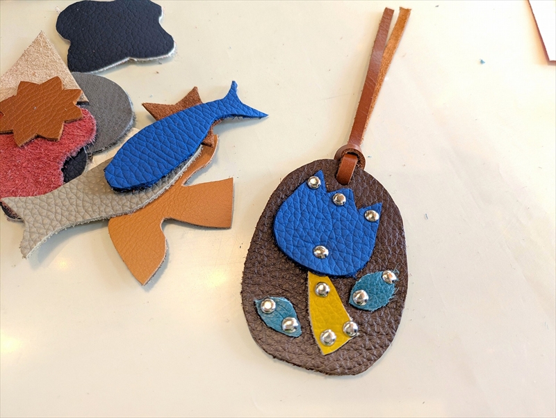 レザーパーツは様々な色や形があり、好みのパーツを選んで組み合わせる作業は楽しい時間でした。